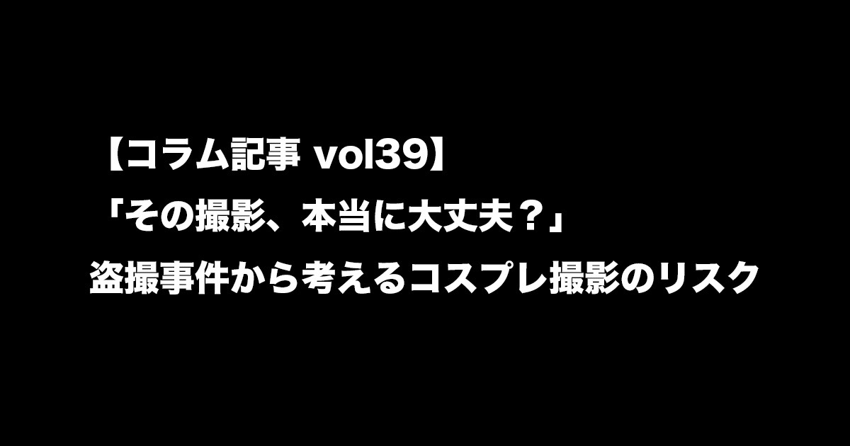 - 【コラム記事 vol39】「その撮影、本当に大丈夫?」——盗撮事件から考えるコスプレ撮影のリスク