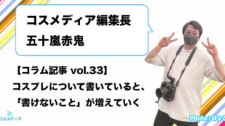 コラム記事 【コラム記事 vol.33】コスプレについて書いていると、「書けないこと」が増えていく こんばんわー!五十嵐赤鬼です。コスメディアでコラム記事を書き始めてから、気づけばもう30本以上。イベントのこと、撮影のこと、コスプレ文化のこと――色々な角度から書いてきました。正直な話をすると、最近ふと思うことがあります。「あれ、次、何を書... 2026.02.18 コラム記事